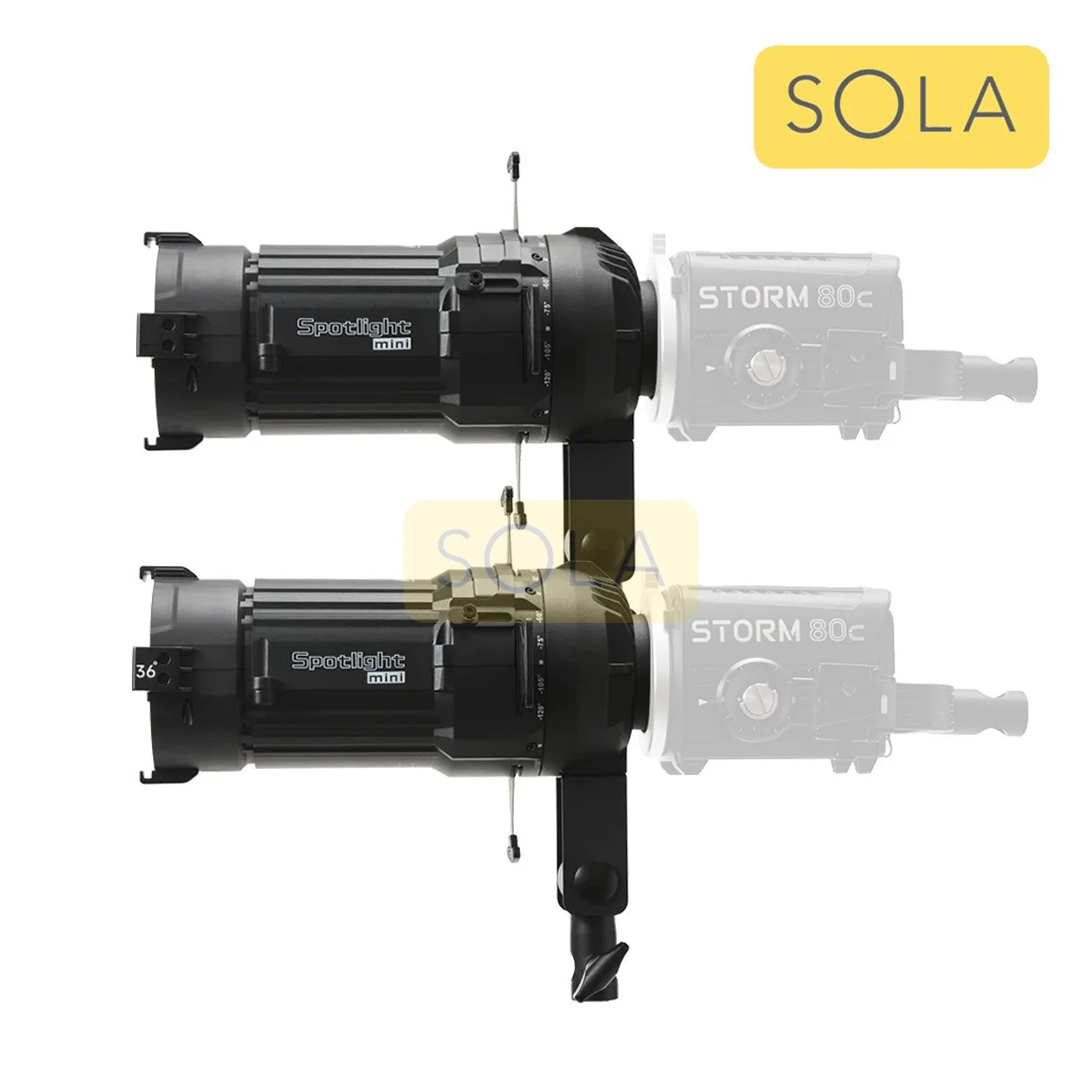 The Spotlight Mini is a compact ellipsoidal projector designed for the STORM 80c. Kit includes 19° and 36° spots with gobo set and iris