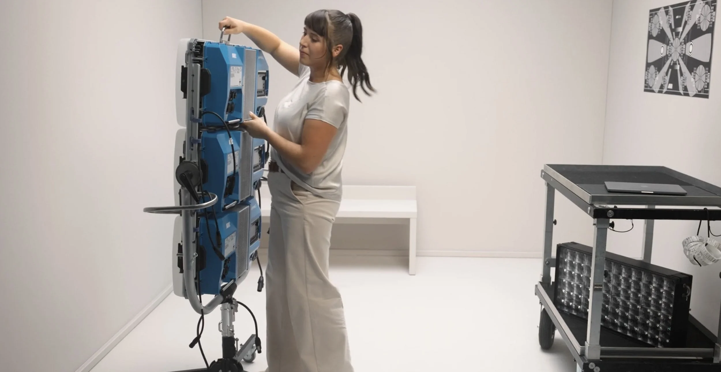 With ARRI's quick-lock system, setting up your modular light is a breeze. Choose between a traditional yoke or spigots directly on the frames, and configure your large fixture as an array in just two minutes, including wiring. It's quick, reliable, and really bright. Above set up X23 (POA).