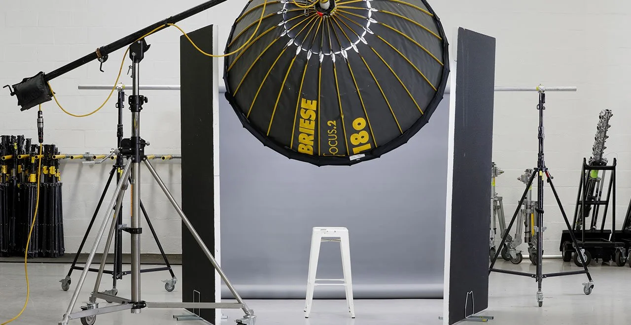 A single high-output Briese 180 2.5K HMI source rigged from an adjustable megaboom. Providing the iconic, high-contrast wrap and architectural detail essential for high-end and fast-paced e-commerce projects.