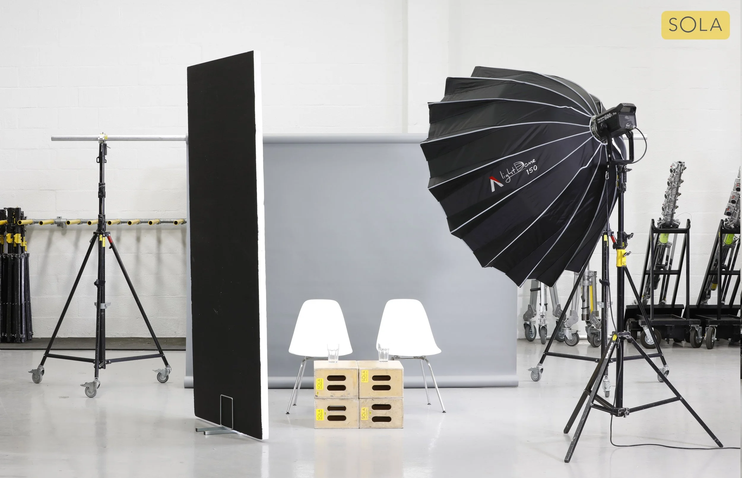 With a single polyboard — white for subtle lift, or black for added contrast and shadow control.