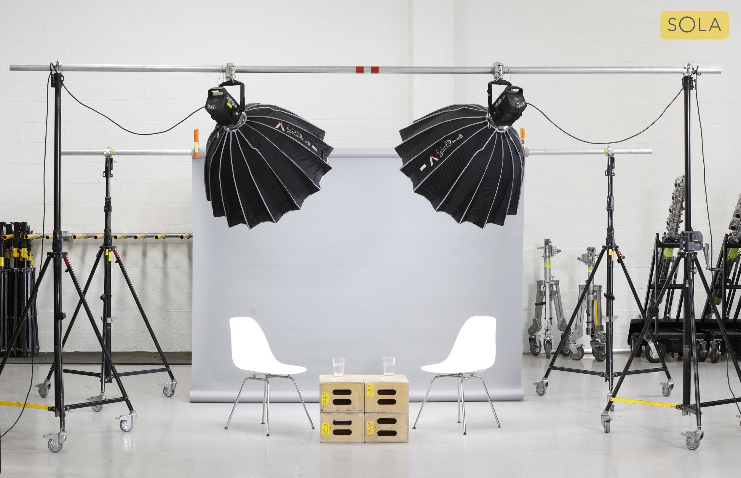 TWO APUTURE 600 SERIES LIGHTS MOUNTED ON A GOALPOST TO INCREASE FREEDOM OF MOVEMENT FOR THE CAMERA, AND MULTIPLE SHOOTING OPTIONS.